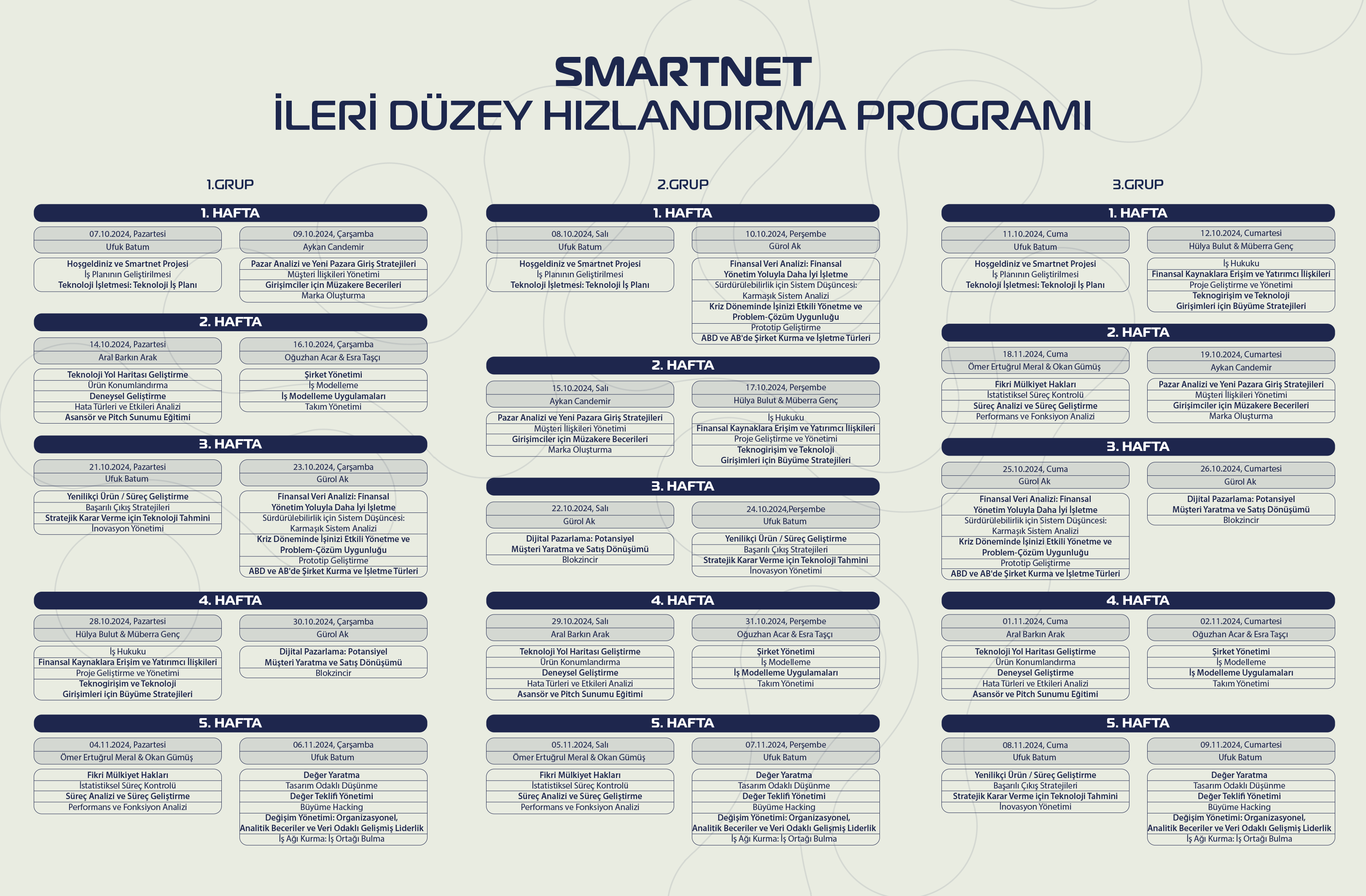 - Türkiye’nin en kapsamlı girişimcilik ağlarından biri olan ve yapay zeka alt yapısı ile çalışan SMARTNET platformu üzerinden diğer girişimcilere, mentorlere, yatırımcılara ulaşma fırsatı,